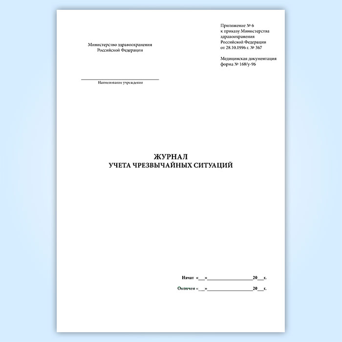 Журнал чрезвычайных ситуаций (форма № 168/у-96) в Магнитогорске купить