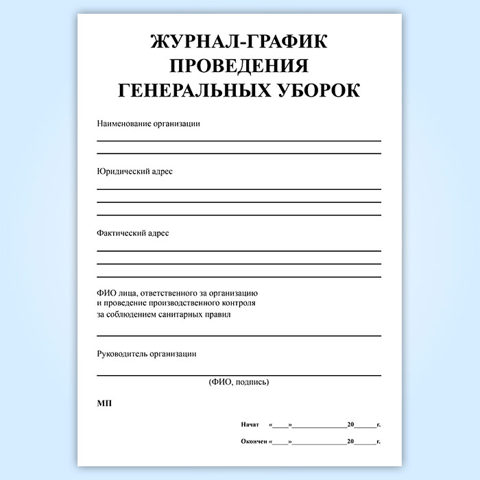 Журнал-график проведения генеральных уборок в Магнитогорске купить