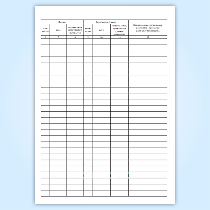 Карточка (книга) учета выдачи имущества в пользование (форма по ОКУД 0504206) в Магнитогорске купить
