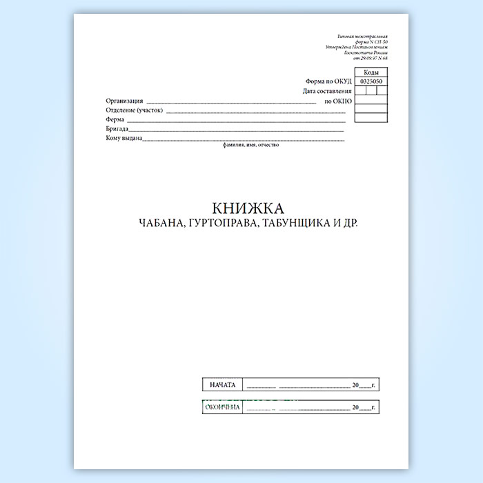 Книжка чабана, гуртоправа, табунщика и др. (форма № СП-50) в Магнитогорске купить