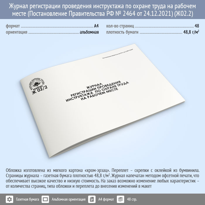 Журнал регистрации проведения инструктажа по охране труда на рабочем месте (Постановление Правительства РФ № 2464 от 24.12.2021) (48 стр., Ж02.2) в Магнитогорске купить