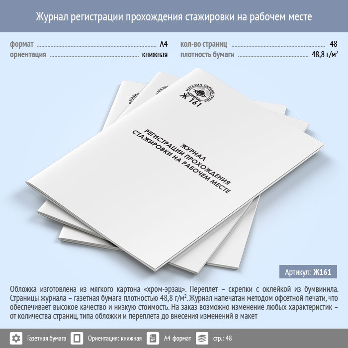 Журнал регистрации прохождения стажировки на рабочем месте (48 стр., Ж161) в Магнитогорске купить