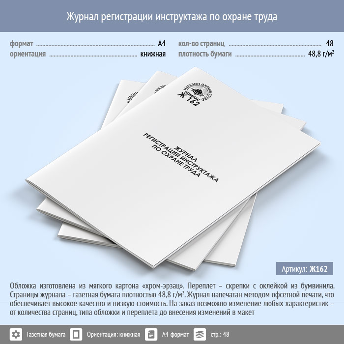 Журнал регистрации инструктажа по охране труда (48 стр., Ж162) в Магнитогорске купить
