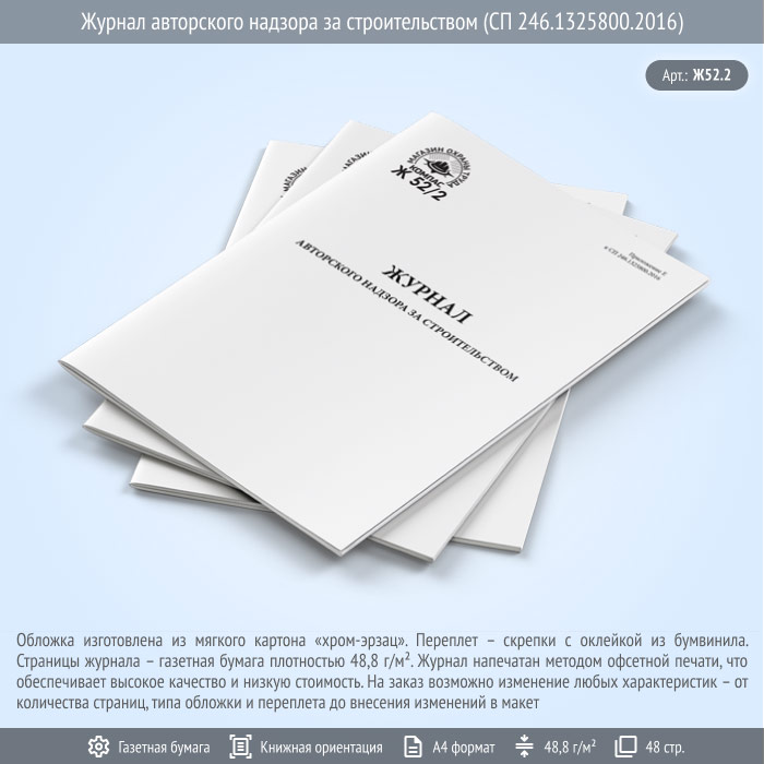 Журнал авторского надзора за строительством (СП 246.1325800.2016) (48 стр., Ж52.2) в Магнитогорске купить