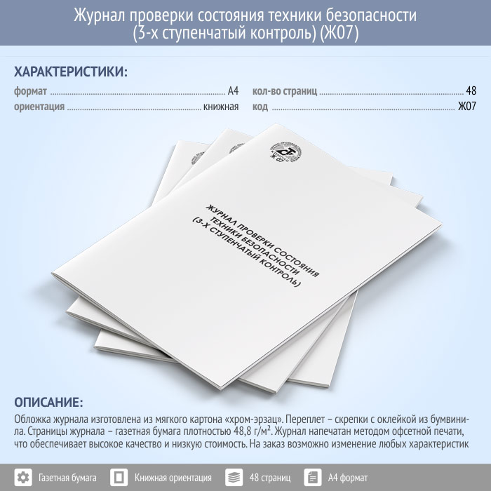 Журнал проверки состояния техники безопасности (3-х ступенчатый контроль, 48 стр., Ж07) в Магнитогорске купить