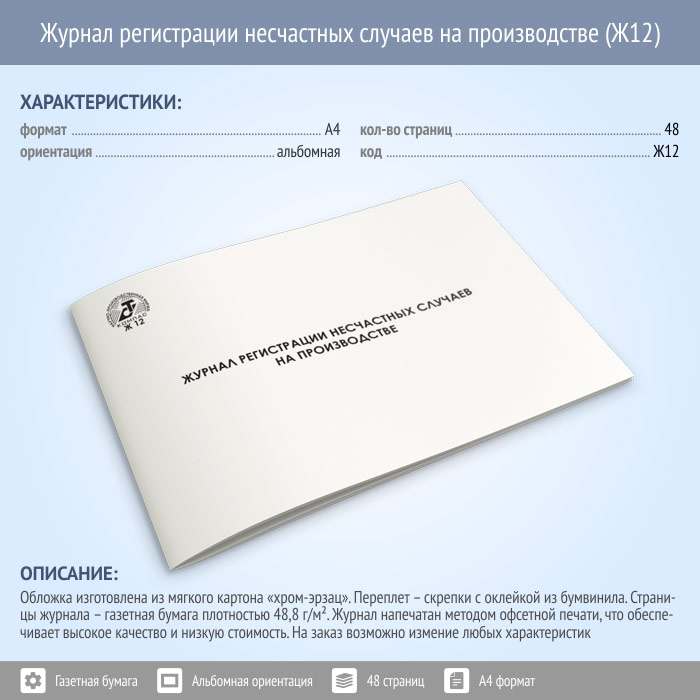 Журнал регистрации несчастных случаев на производстве (48 стр., Ж12) в Магнитогорске купить
