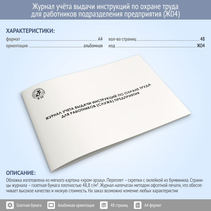 Журнал учета выдачи инструкций по охране труда для работников подразделений (служб) предприятия (48 стр., Ж04) в Магнитогорске купить