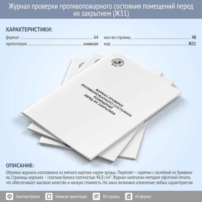 Журнал проверки противопожарного состояния помещений перед их закрытием (48 стр., Ж31) в Магнитогорске купить