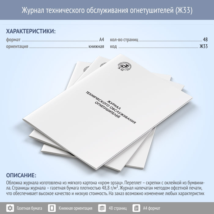 Журнал технического обслуживания огнетушителей (48 стр., Ж33) в Магнитогорске купить