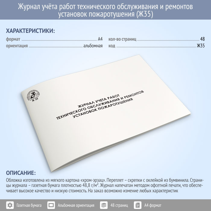Журнал учета работ технического обслуживания и ремонтов установок пожаротушения (48 стр., Ж35) в Магнитогорске купить