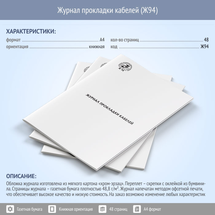 Журнал прокладки кабелей (48 стр., Ж94) в Магнитогорске купить
