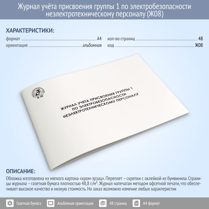 Журнал учета присвоения группы 1 по электробезопасности неэлектротехническому персоналу (48 стр., Ж08) в Магнитогорске купить