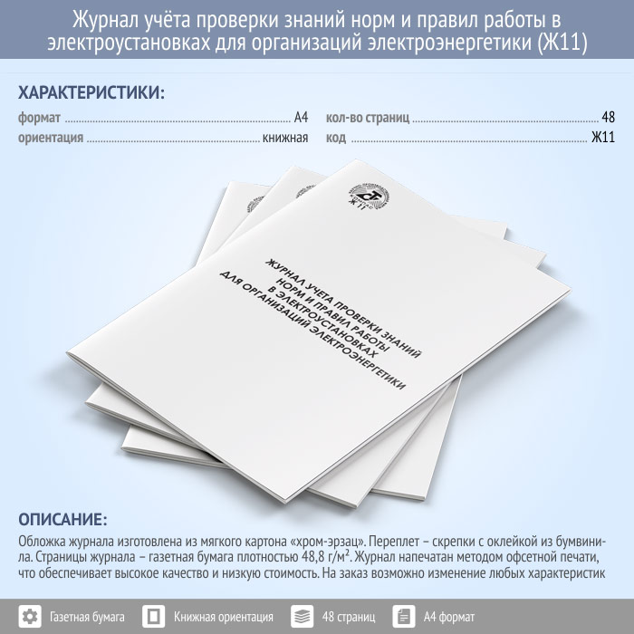 Журнал учета проверки знаний норм и правил работы в электроустановках для организаций электроэнергетики (Приложение 6) (48 стр., Ж11) в Магнитогорске купить