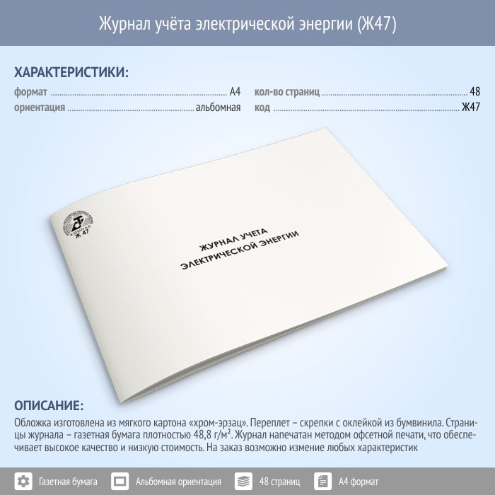 Журнал учета электрической энергии (48 стр., Ж47) в Магнитогорске купить
