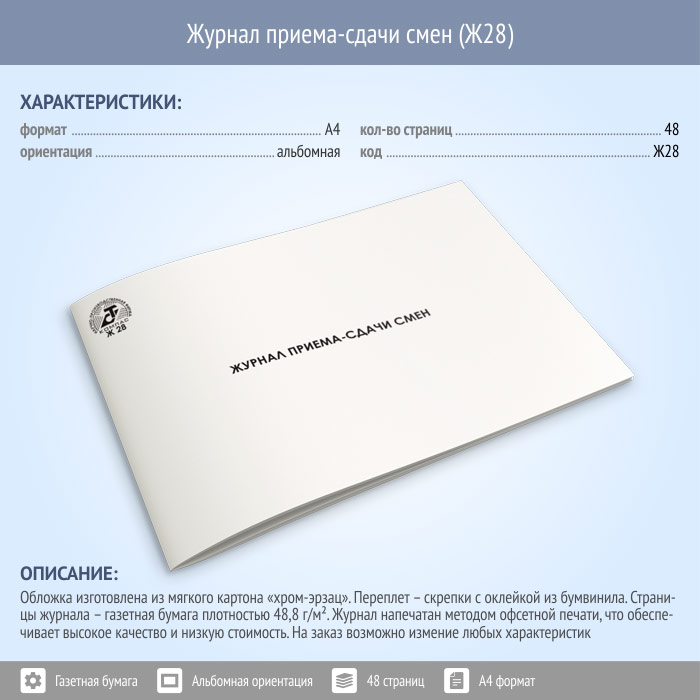 Журнал приема-сдачи смен (48 стр., Ж28) в Магнитогорске купить