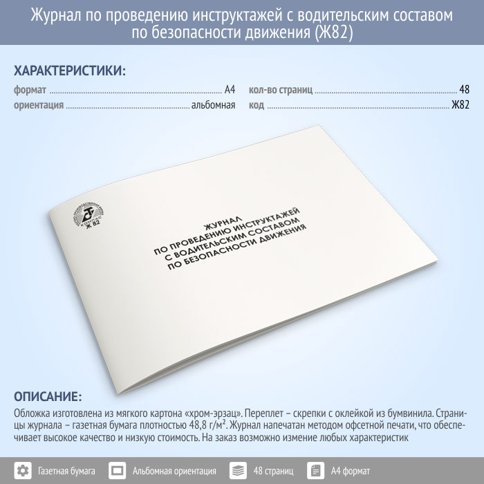 Журнал по проведению инструктажей с водительским составом по безопасности движения (48 стр., Ж82) в Магнитогорске купить