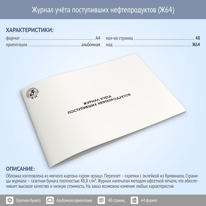 Журнал учета поступивших нефтепродуктов (48 стр., Ж64) в Магнитогорске купить