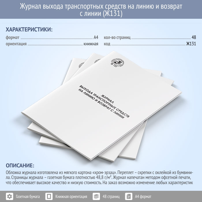 Журнал выхода транспортных средств на линию и возврат с линии (48 стр., Ж131) в Магнитогорске купить