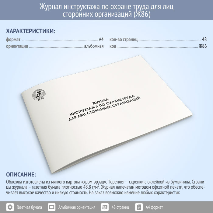 Журнал инструктажа по охране труда для лиц сторонних организаций (48 стр., Ж86) в Магнитогорске купить