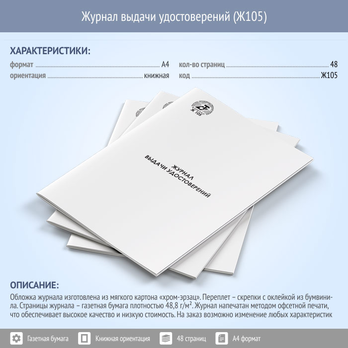 Журнал выдачи удостоверений (48 стр., Ж105) в Магнитогорске купить