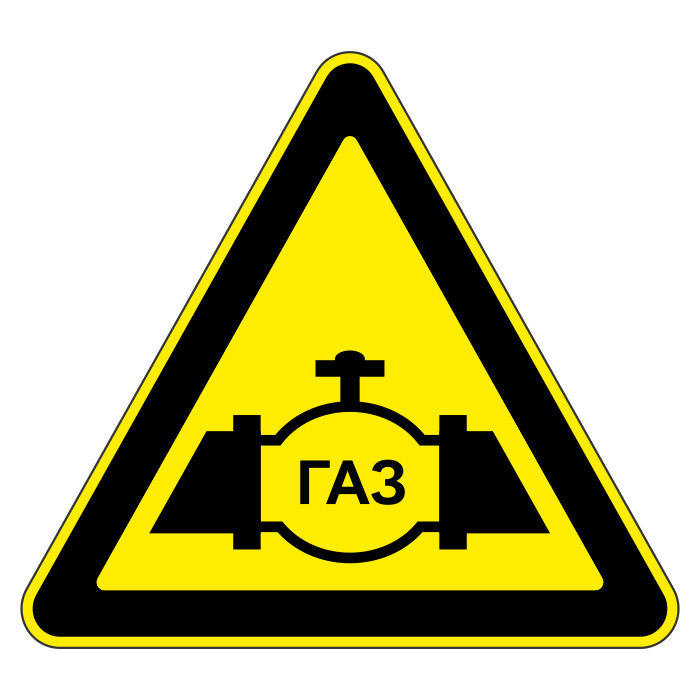Знак «Осторожно газопровод», МГ-2 (металл 0,8 мм, I типоразмер: сторона 700 мм, С/О пленка: тип А коммерческая)