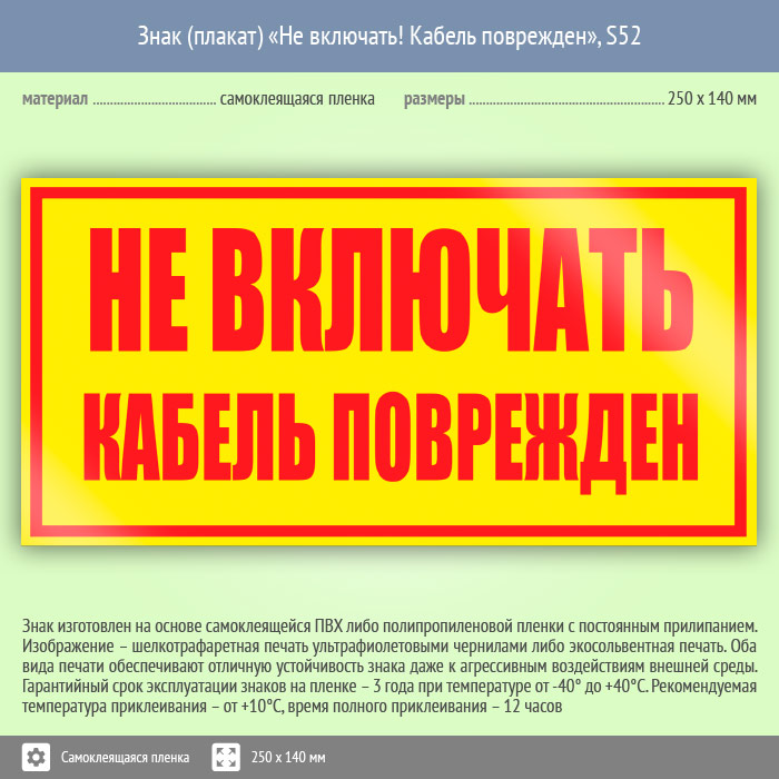 Знак S52 Не включать! Кабель поврежден