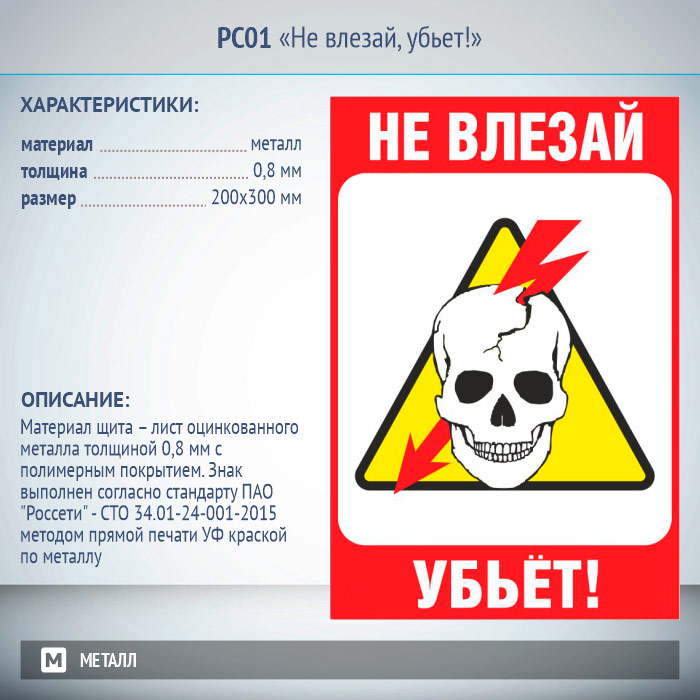Знак «Не влезай, убьет!», РС01 (металл, 200х300 мм) в Магнитогорске купить