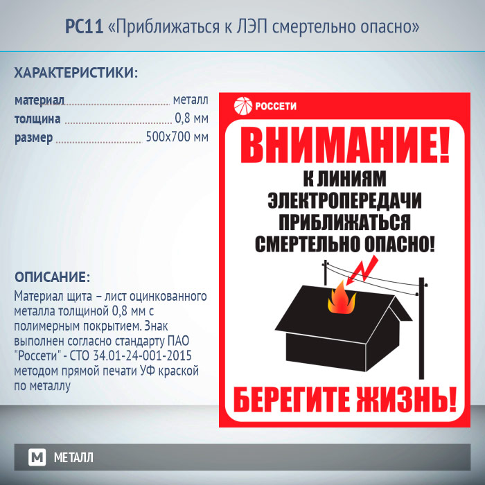 Информационный щит «Приближаться к ЛЭП смертельно опасно», РС11 (металл, 500х700 мм) в Магнитогорске купить