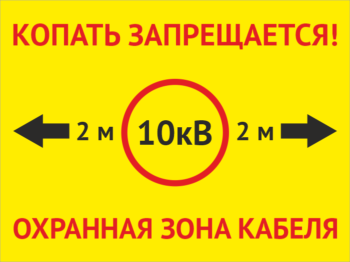 Табличка «Охранная зона кабеля 10 кВ. Копать запрещается», OZK-01 (пластик 2 мм, 400х300 мм) в Магнитогорске купить