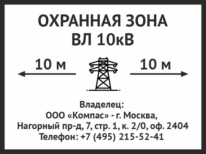Знак «Охранная зона ВЛ 10 кВ (высоковольтной линии)», OZK-07 (пластик 2 мм, 400х300 мм) в Магнитогорске купить