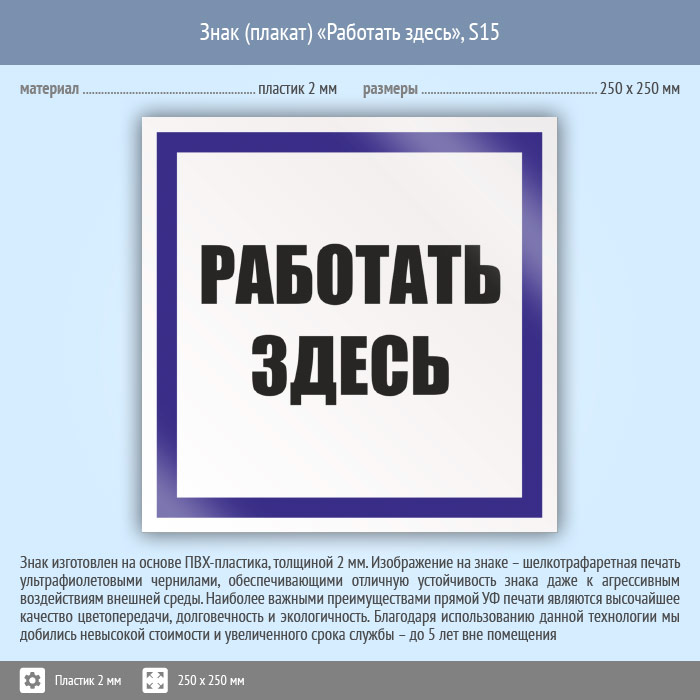 Знак (плакат) «Работать здесь», S15 (пластик, 250х250 мм) в Магнитогорске купить