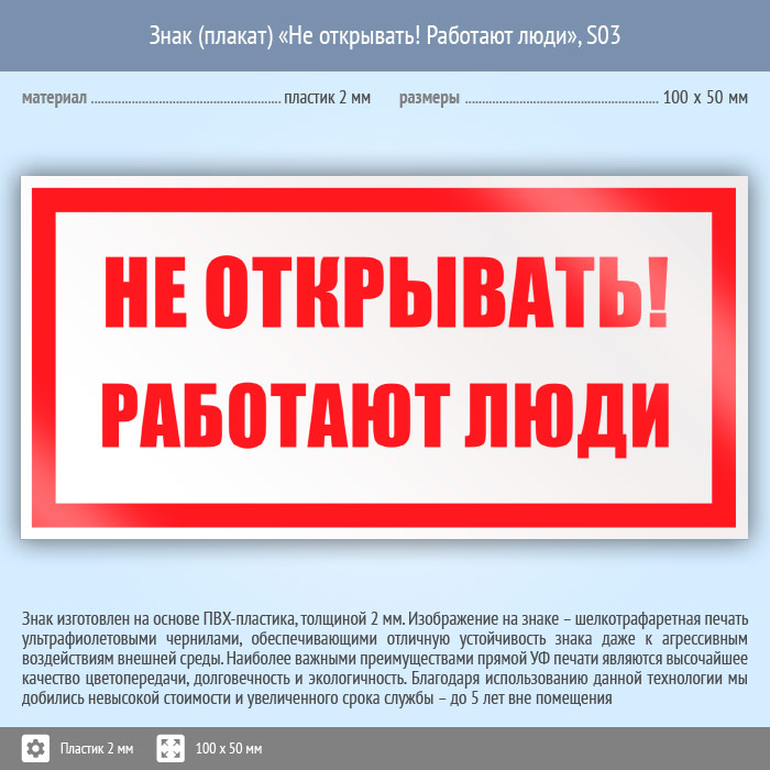 Знак (плакат) «Не открывать! Работают люди», S03 (пластик, 100х50 мм) в Магнитогорске купить