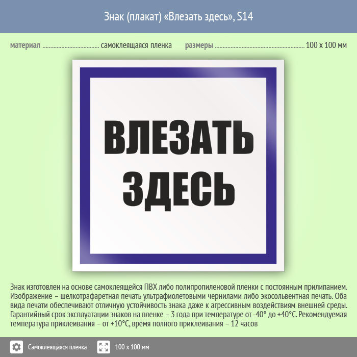 Знак (плакат) «Влезать здесь», S14 (пленка, 100х100 мм) в Магнитогорске купить