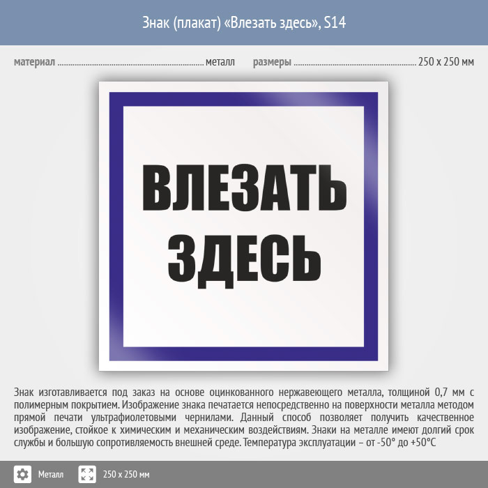 Знак (плакат) «Влезать здесь», S14 (металл, 250х250 мм) в Магнитогорске купить