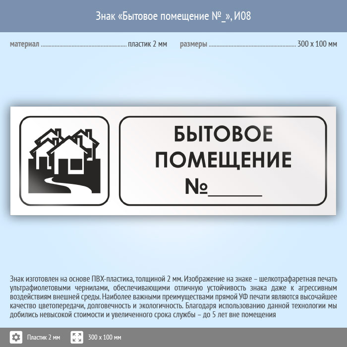 Знак «Бытовое помещение №_», И08 (пластик, 300х100 мм) в Магнитогорске купить