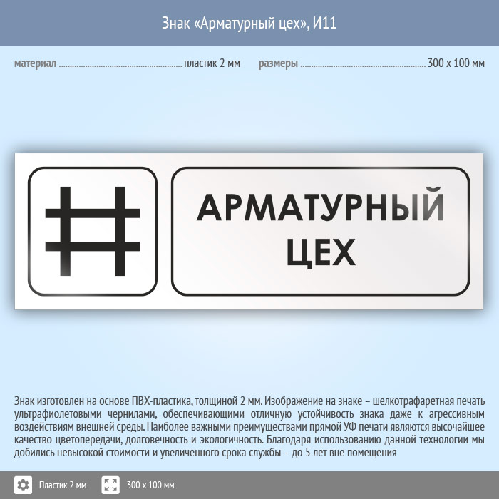 Знак «Арматурный цех», И11 (пластик, 300х100 мм) в Магнитогорске купить
