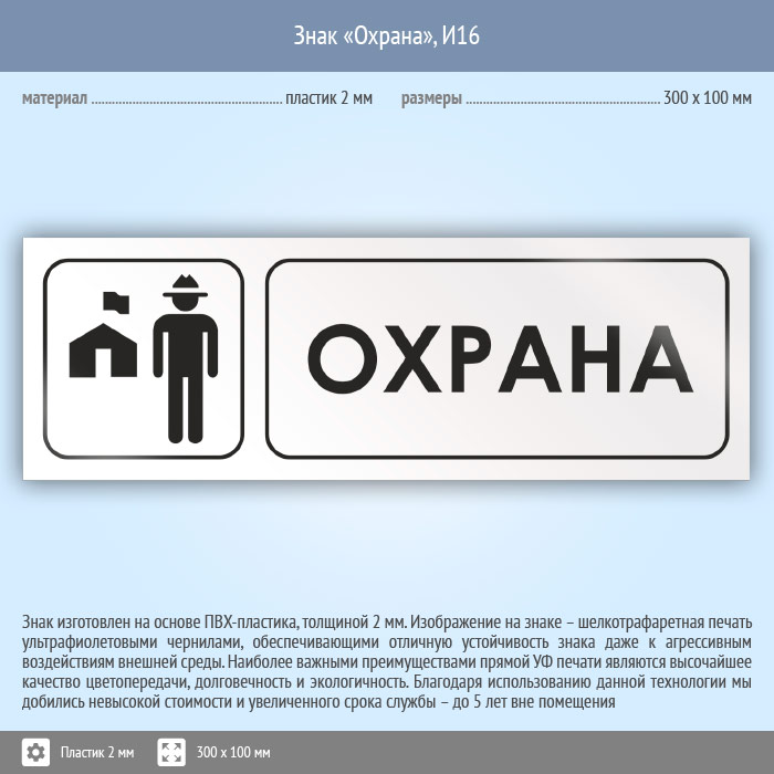 Знак «Охрана», И16 (пластик, 300х100 мм) в Магнитогорске купить