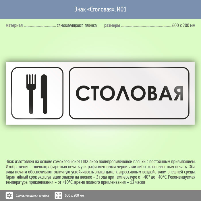Знак «Столовая», И01 (пленка, 600х200 мм) в Магнитогорске купить