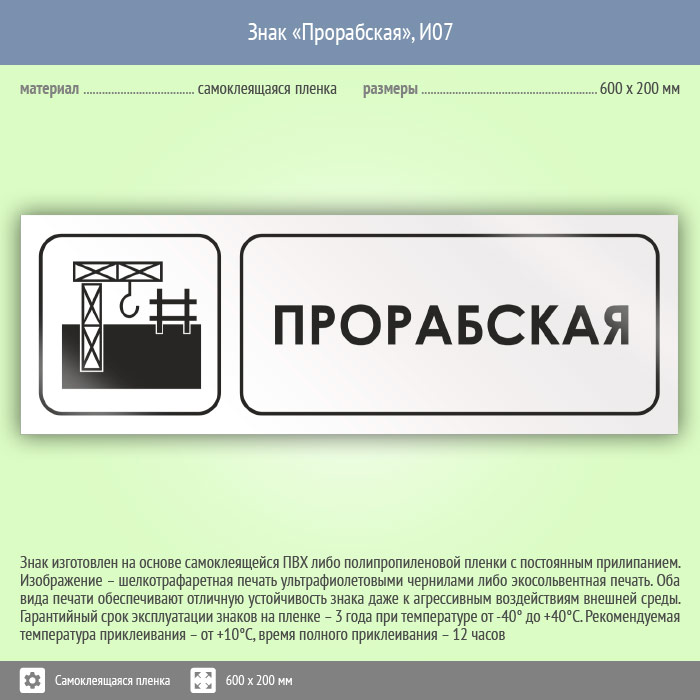Знак «Прорабская», И07 (пленка, 600х200 мм) в Магнитогорске купить