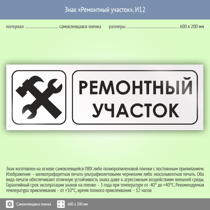 Знак «Ремонтный участок», И12 (пленка, 600х200 мм) в Магнитогорске купить