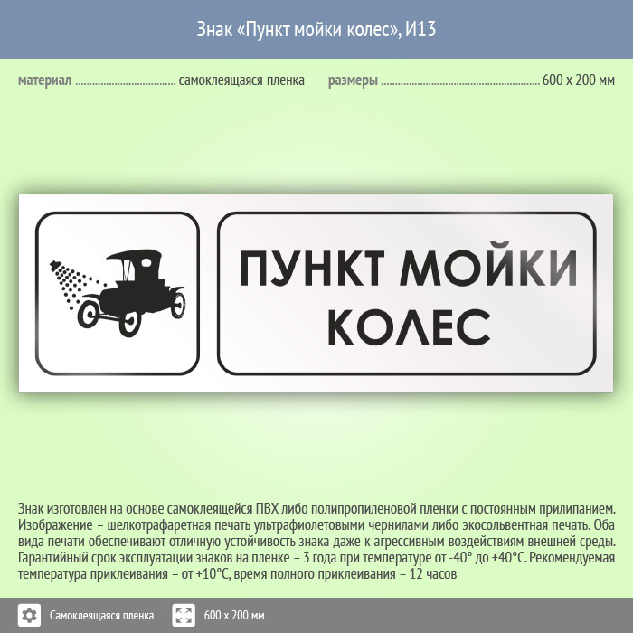 Знак «Пункт мойки колес», И13 (пленка, 600х200 мм) в Магнитогорске купить
