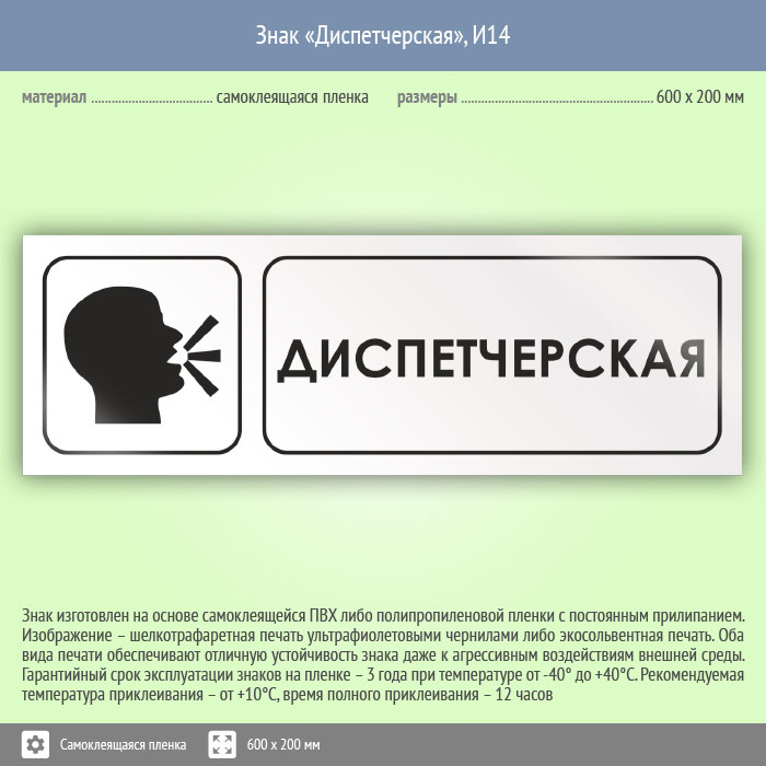 Знак «Диспетчерская», И14 (пленка, 600х200 мм) в Магнитогорске купить