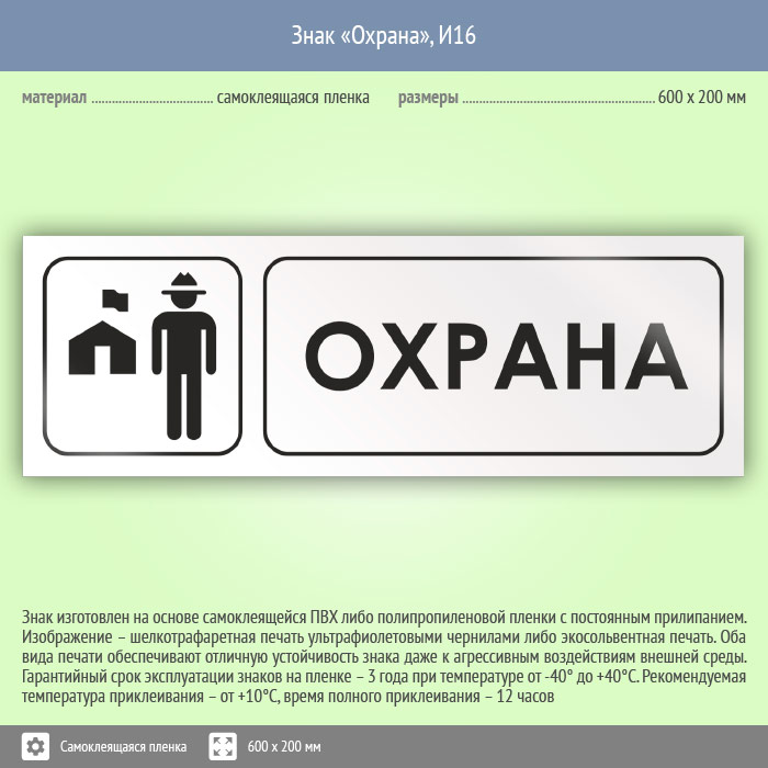 Знак «Охрана», И16 (пленка, 600х200 мм) в Магнитогорске купить