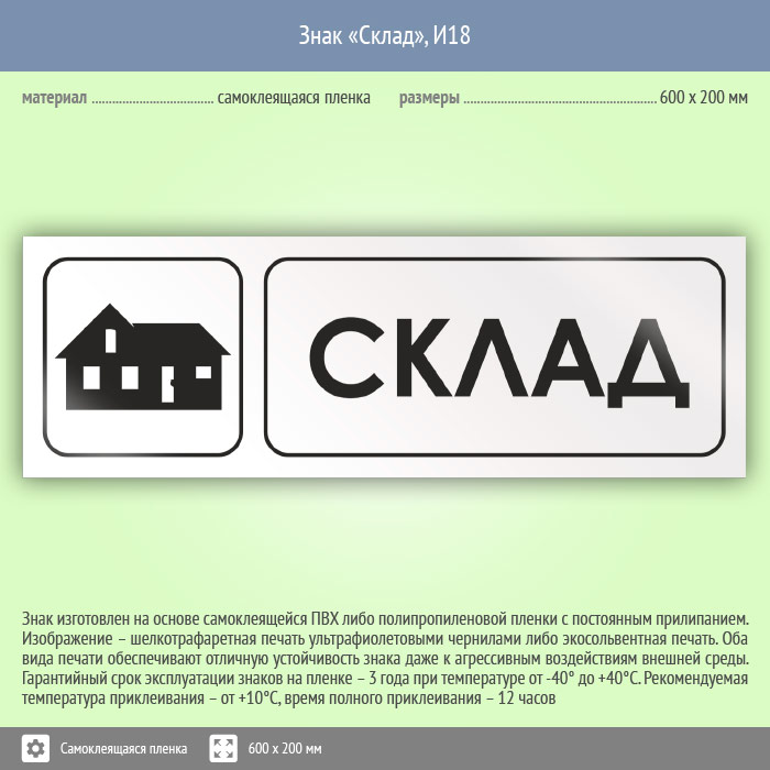 Знак «Склад», И18 (пленка, 600х200 мм) в Магнитогорске купить