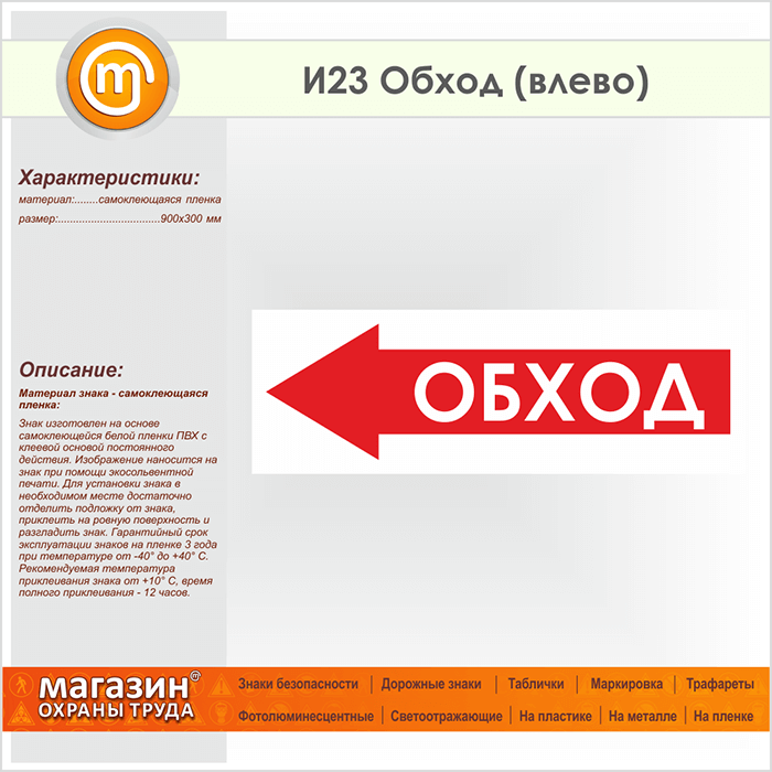Знак «Обход (влево)», И23 (пленка, 900х300 мм) в Магнитогорске купить