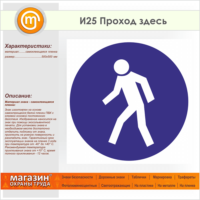 Знак «Проход здесь», И25 (пленка, 500х500 мм) в Магнитогорске купить