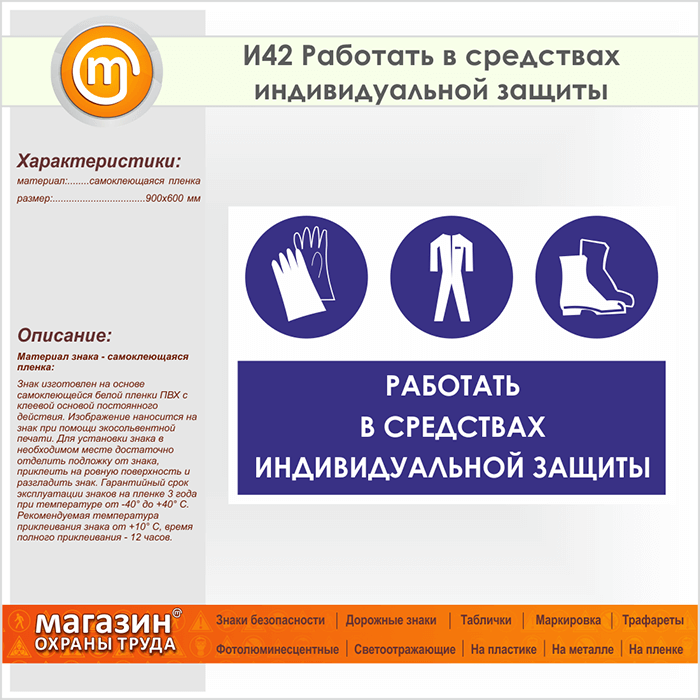 Знак «Работать в средствах индивидуальной защиты», И42 (пленка, 900х600 мм) в Магнитогорске купить