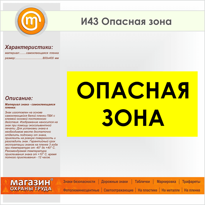 Знак «Опасная зона», И43 (пленка, 800х400 мм) в Магнитогорске купить
