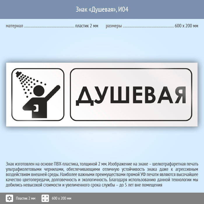 Знак «Душевая», И04 (пластик, 600х200 мм) в Магнитогорске купить