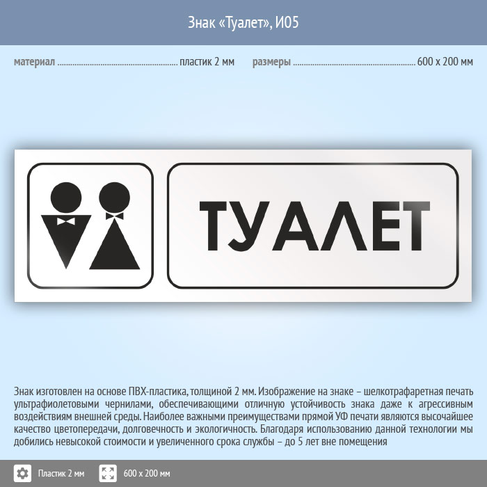 Знак «Туалет», И05 (пластик, 600х200 мм) в Магнитогорске купить